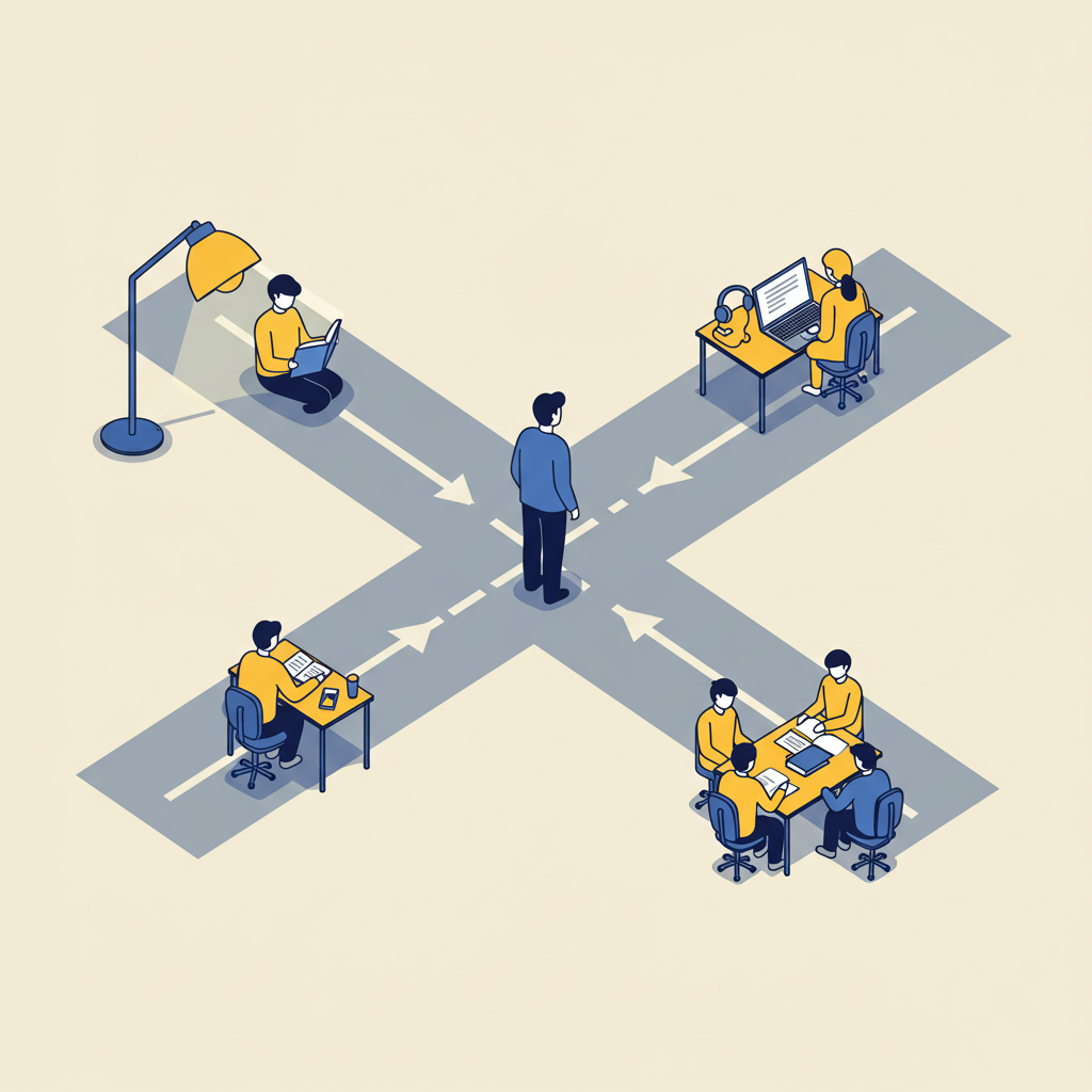 직장인이 선택할 수 있는 공부 방법은 크게 세 가지로 나눌 수 있습니다. 각 방법의 장단점을 현실적으로 짚어보고, 나에게 맞는 방법은 무엇일지 함께 고민해 봅시다.