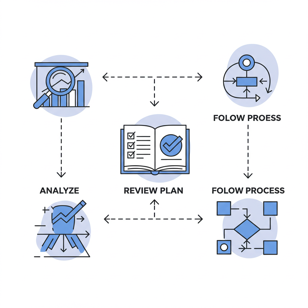 그렇다면 '성급한 행동' 대신 무엇을 해야 할까요? PMI가 모든 프로세스 문제에 일관되게 요구하는 정답의 로직은 명확합니다. 바로 '분석 → 계획 검토 → 절차 준수'라는 3단계 사고방식입니다. 어떤 문제가 나와도 이 프레임워크에 맞춰 생각하는 연습을 해야 합니다.